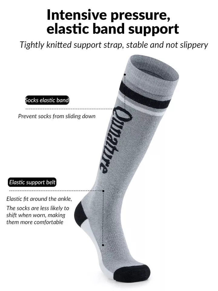 Udržování tepla a teploty: Lyžařské ponožky jsou vyrobeny ze zesíleného jemného froté, které udržuje teplo a teplotu a poskytuje nepřetržité zahřívání při dlouhodobých outdoorových lyžařských aktivitách. Je vybavena pletenou vlněnou směsí, je měkká a pohodlná, přiléhá k pokožce a není dusná.