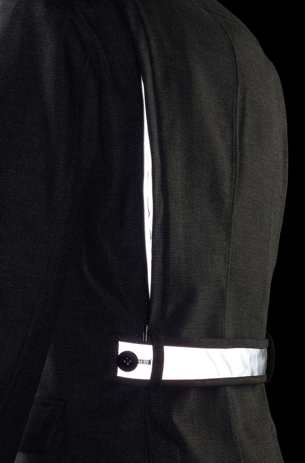Britové mluví o „klasice s nádechem“, my tomu říkáme aktualizace stylu. Pro náš model Paul C Change jsme se inspirovali britskou střeleckou bundou. Tedy bundy z odolné látky s prostornými, nášivkovými kapsami s klopami, záhyby za pažemi uzavíratelnými na zip, bočními rozparky a zadním popruhem pro outdoorové aktivity. Naši zákazníci se však méně často zdržují ve Skotské vysočině a o víkendech jsou spíše ve městě nebo v okolí. Romantické tvídy jsou méně vaše věc, protože chcete hřejivou, vodoodpudivou a prodyšnou látku. Proto jsme náš model Paul C-Change ušili na míru jako funkční tvídovou alternativu z odolné tkaniny C-Change pro chladnější dny. Našívané boční kapsy s klopami na knoflíky nabízejí úložný prostor pro vše, co vám díky klopě s knoflíkem nevypadne z vnější náprsní kapsy ani při prudkých pohybech. Paul, stejně jako všechny naše modely, nabízí skvělou ochranu za soumraku a tmy díky oboustranným reflektorům 3M™ Scotchlite™.