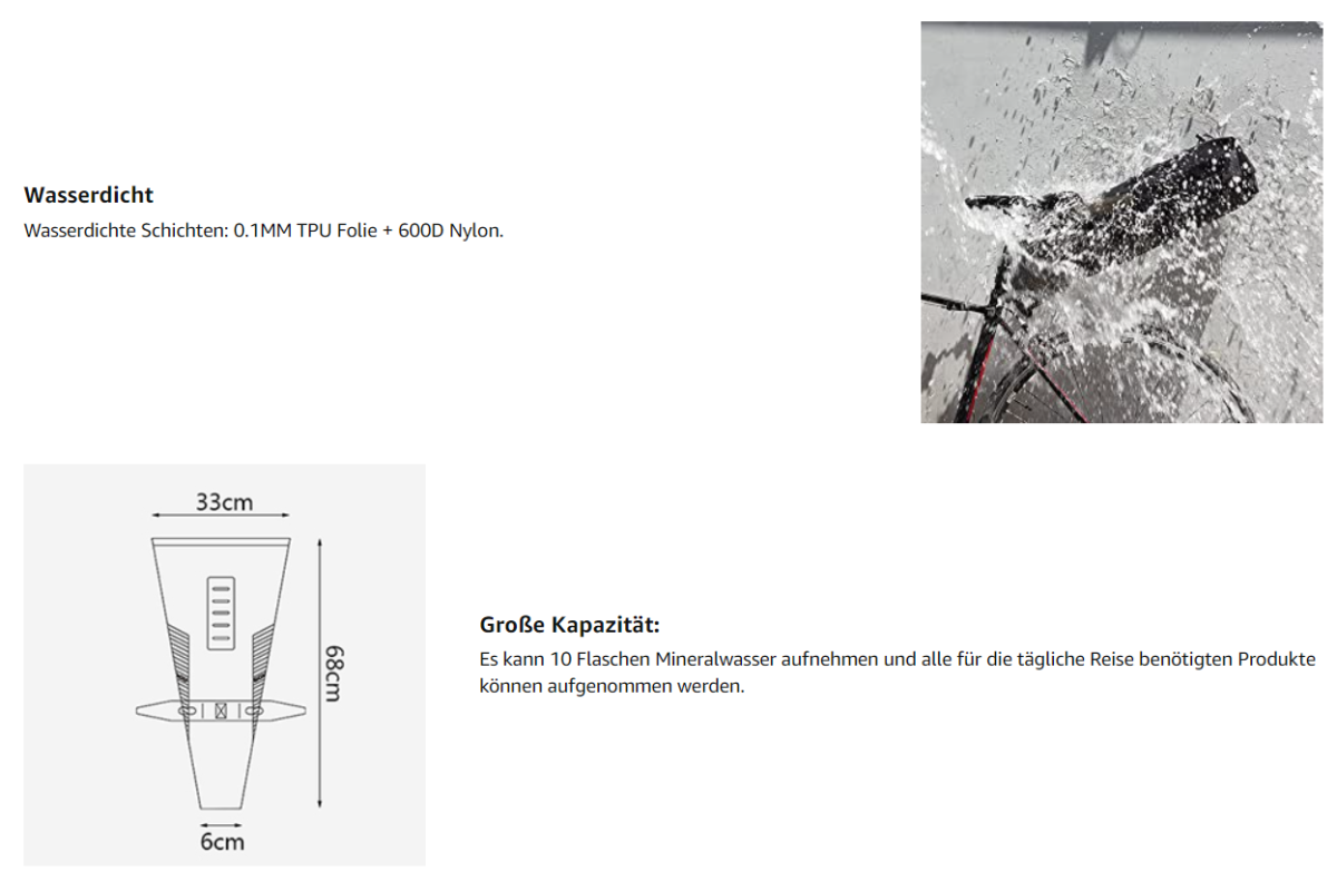 NASTAVITELNÁ, SKLÁDACÍ A SÍŤOVANÁ TAŠKA: Sedlová taška je nastavitelná a skládací. Můžete jej složit do malého sáčku nebo srolovat do velkého sáčku. Síťovaná kapsa na sedlové brašně umožňuje odložit mokré věci nebo láhve s vodou.