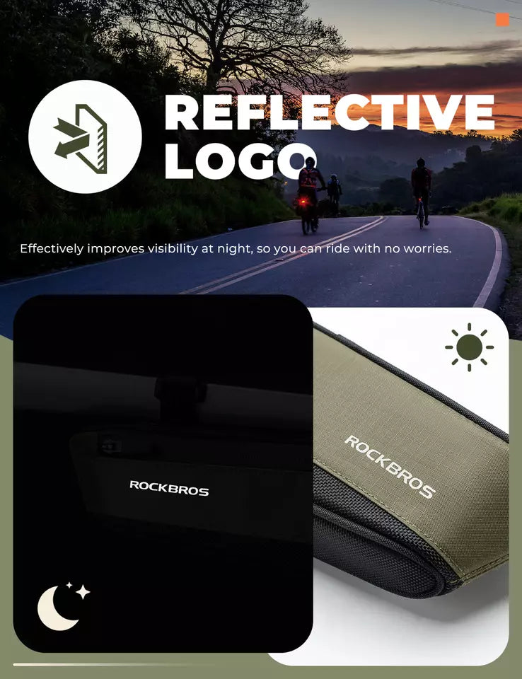 Vysoká viditelnost a bezpečnost:Taška má reflexní prvky, které zlepšují vaši viditelnost v noci a zajišťují bezpečnou jízdu.
