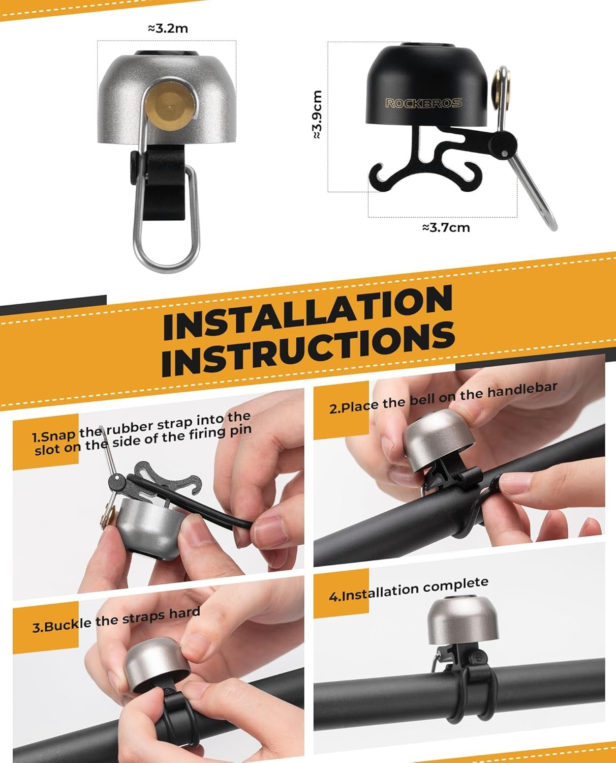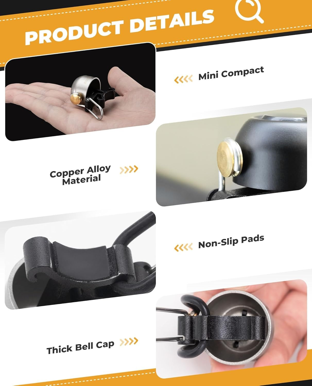 Kompaktní a lehký: Klasický zvonek na řídítka je kompaktní a zabírá málo místa. Je vhodný pro trubky řídítek o průměru 22-34mm, což může ušetřit více místa na řídítkách a gumička se jednoduše a snadno instaluje. Cyklistický zvonek váží pouze asi 40 g