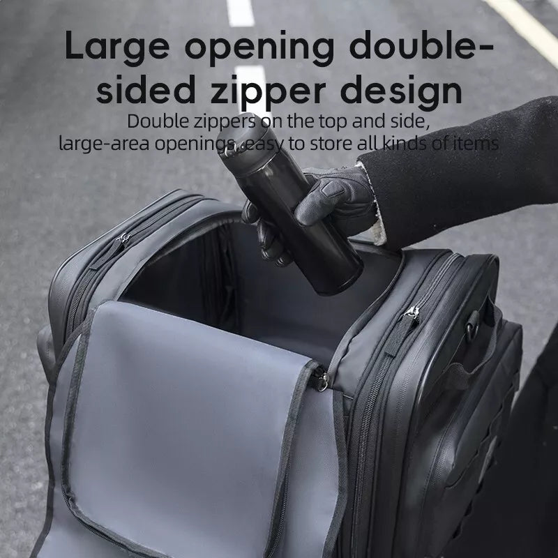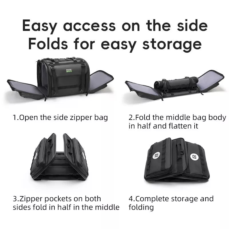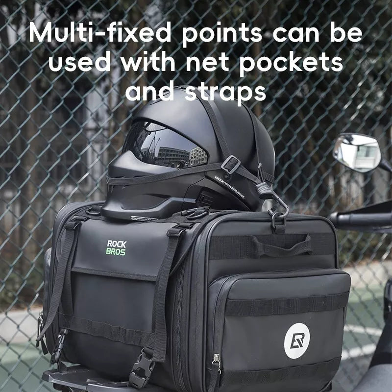 Velká kapacita 43-50L:Taška na motocykl ROCKBROS nabízí dostatek prostoru pro vaše cestovní vybavení. Taška má rozšiřitelný vršek ze síťoviny, který rozšiřuje úložnou plochu a poskytuje další úložný prostor. Nezávislé boční kapsy po stranách mohou uložit různé věci v kategoriích.