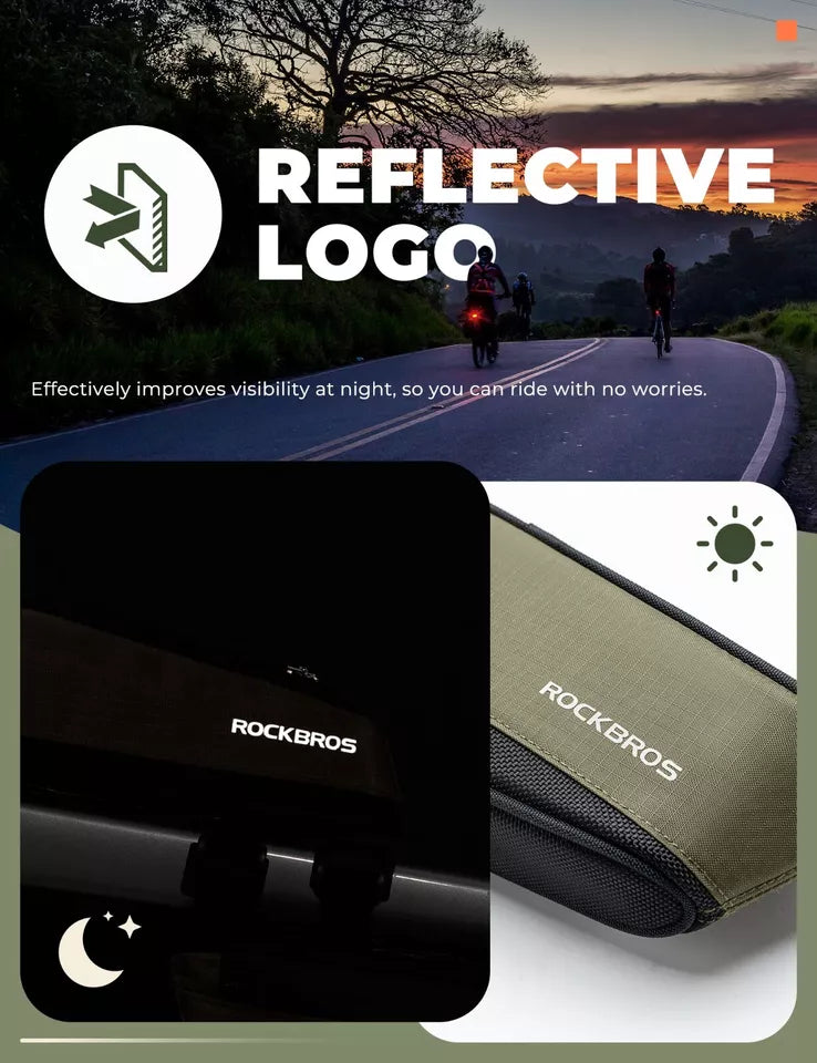 Vysoká viditelnost a bezpečnost:Taška má reflexní prvky, které zlepšují vaši viditelnost v noci a zajišťují bezpečnou jízdu.