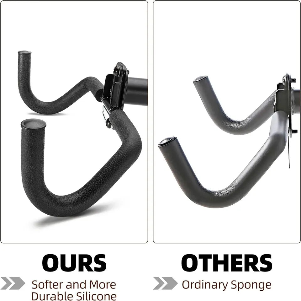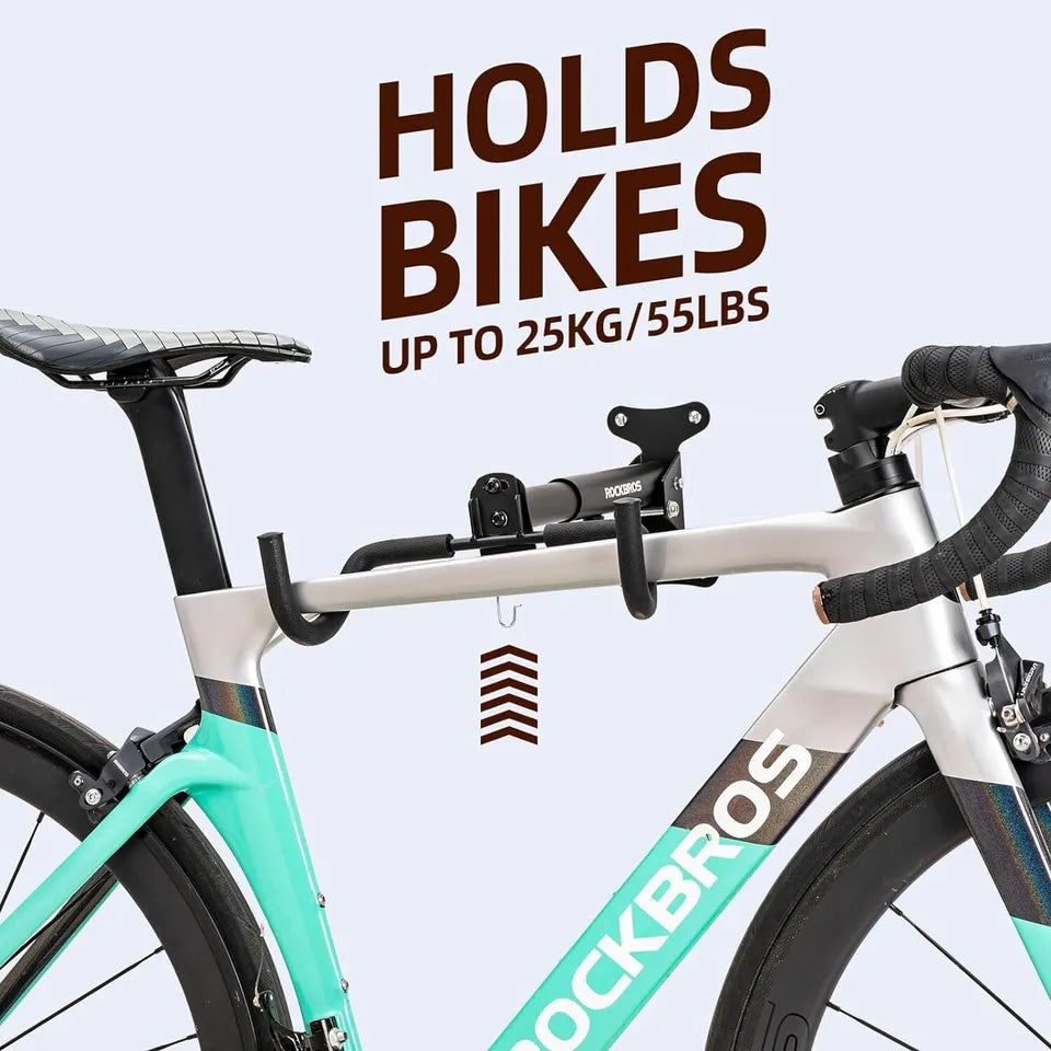 Robustní nástěnný držák na kolo: Tento nástěnný držák je vyroben z robustní oceli a spolehlivě podpírá kola do hmotnosti 55 liber. Všestranný design je vhodný pro horská kola, silniční kola a hybridní kola a zajišťuje bezpečné a odolné řešení skladování pro vaši garáž.